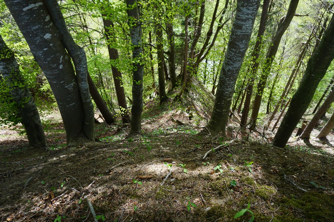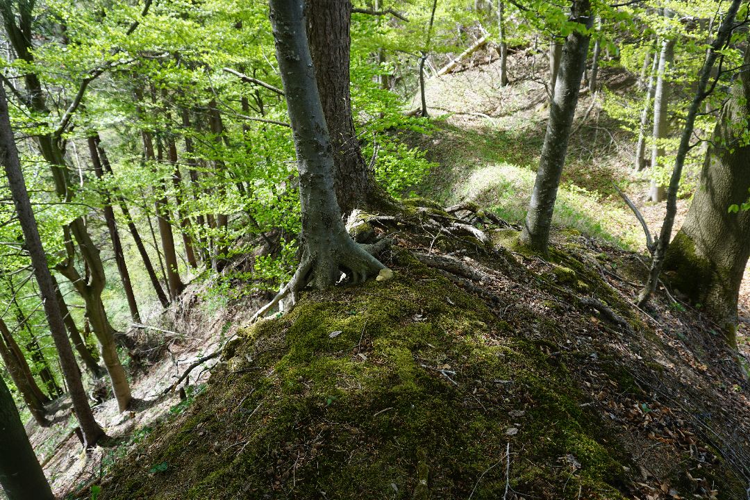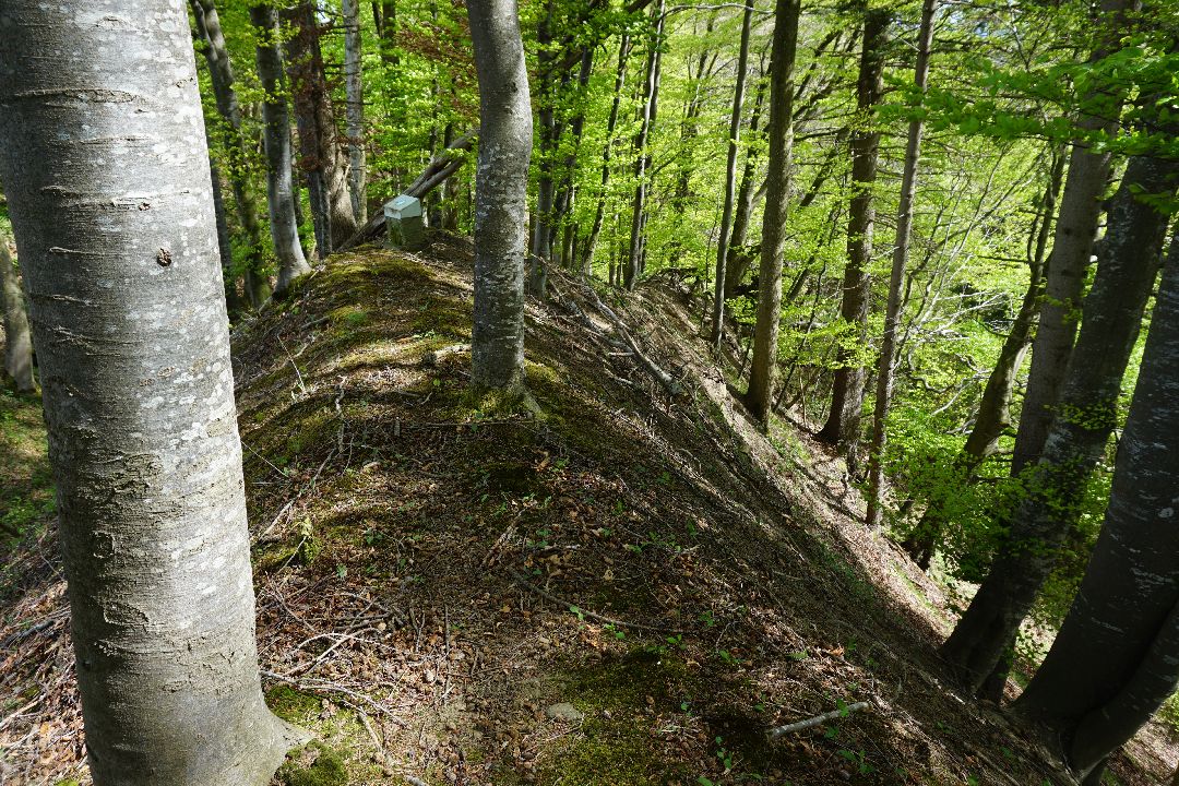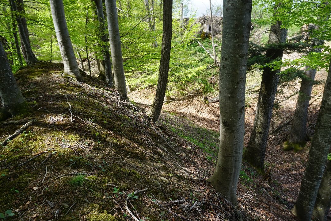 Kurz vor dem Sachsenrieder Bänkle kann man noch einen kleinen Wall gut