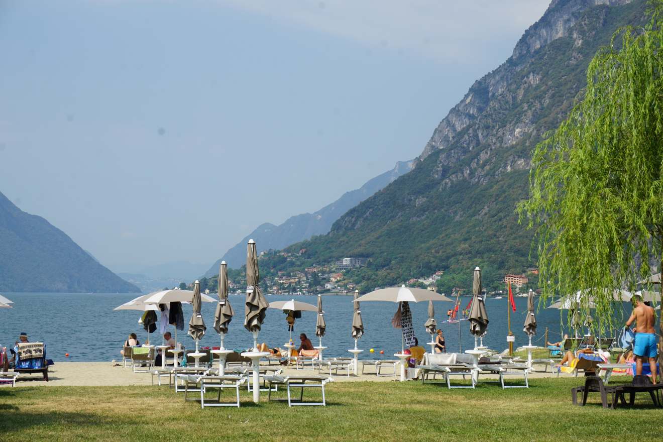 bei Porlezza beim Beach und geniessen diesen Anblick. Ein aussergewöhnlich schöner Urlaubs-Abend im