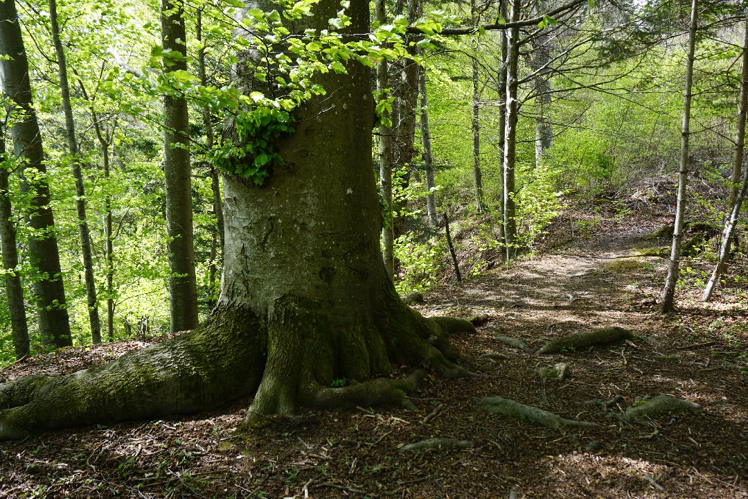 Eine alte Buche mit riesigen Wurzeln
