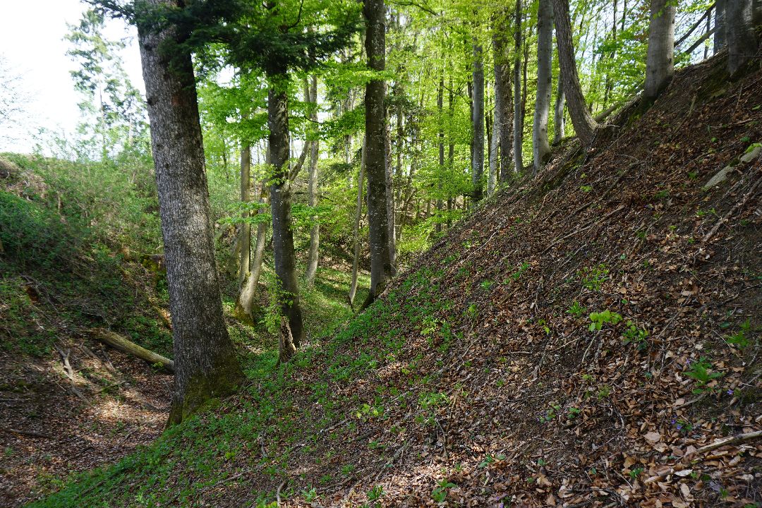 Kurz vor dem Sachsenrieder Bänkle kann man noch einen kleinen Wall gut