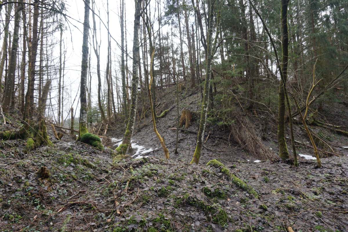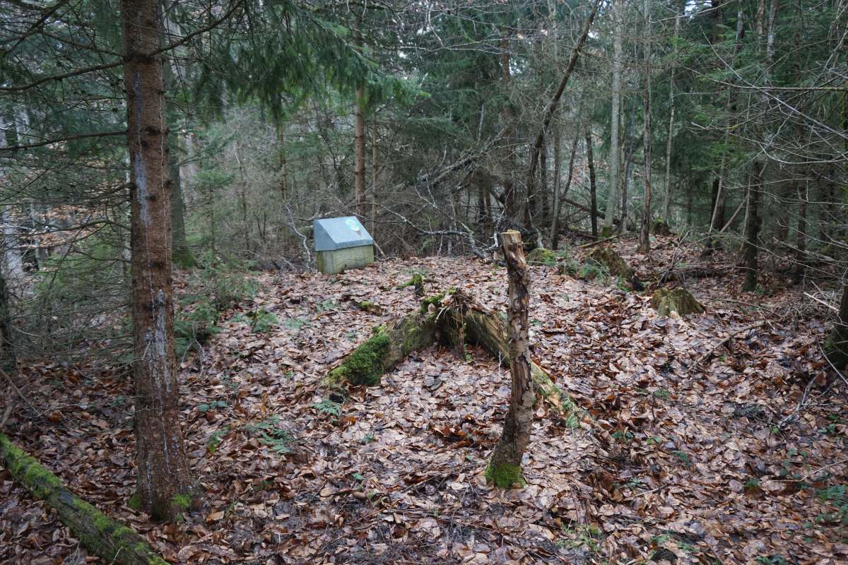 Burgstall. Wenn man dem schönen Forstweg des Staufner-Berg-Rundwegs folgt und dann auf gut