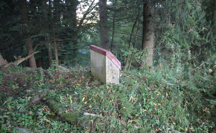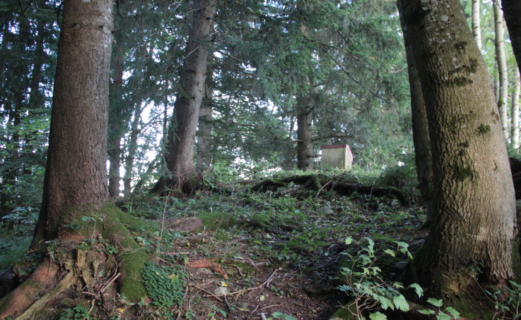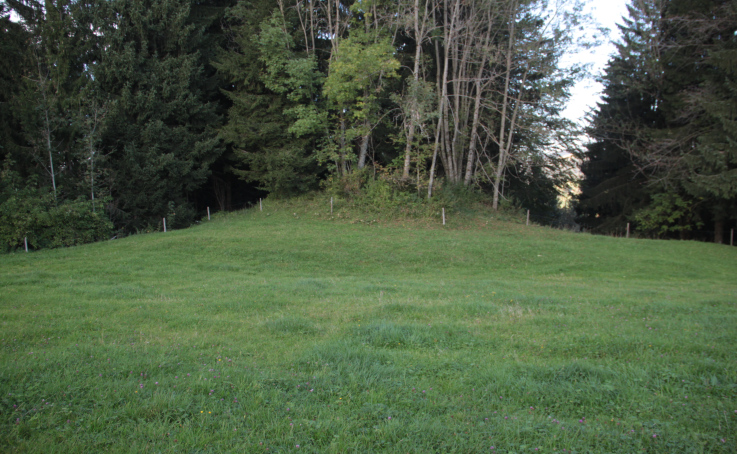 ein tief eingeschnittenes Tobel begrenzt wird. Die Fläche des Platzes ist ungefähr