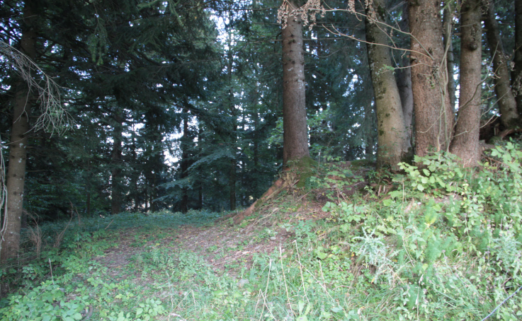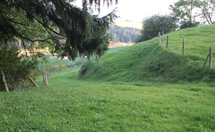 könnte die Aussenseite eines einst den Platz absperrenden Halsgrabens darstellen.