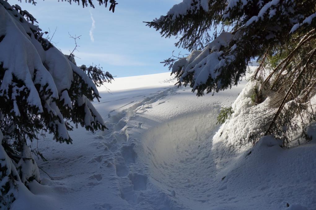 Pulvarschnee im Winter, a Föndag in de Berg
