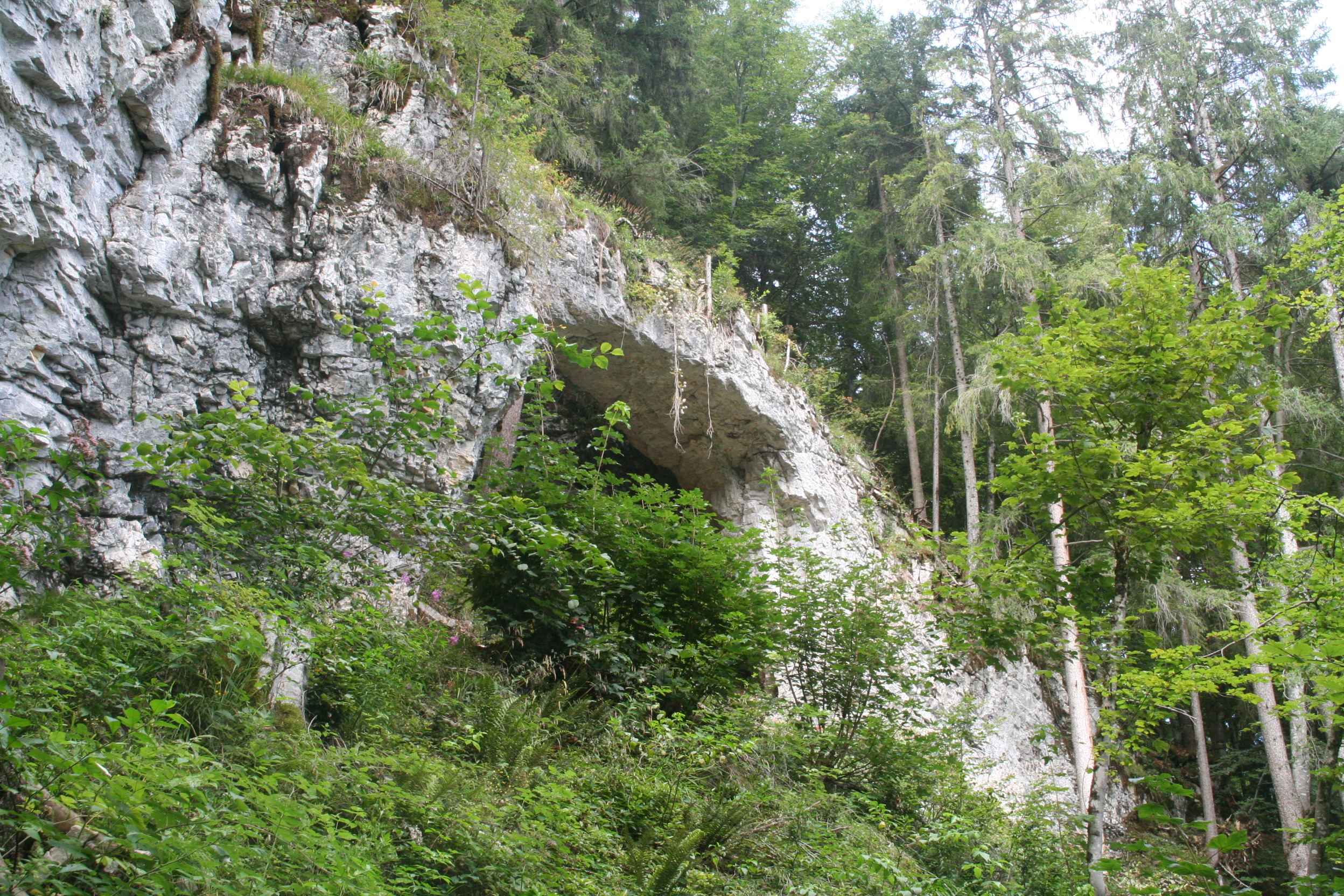 Das ist leicht beantwortet, denn der Weg führt zum Jehlefelsen, unter dessen weiter überhängenden Felsen aus Schrattenkalk Vojkffy einen wichtigen Fundplatz erschloss. Hier hatten in der Mittelsteinzeit vor etwa 10.000 Jahren nomadisierende