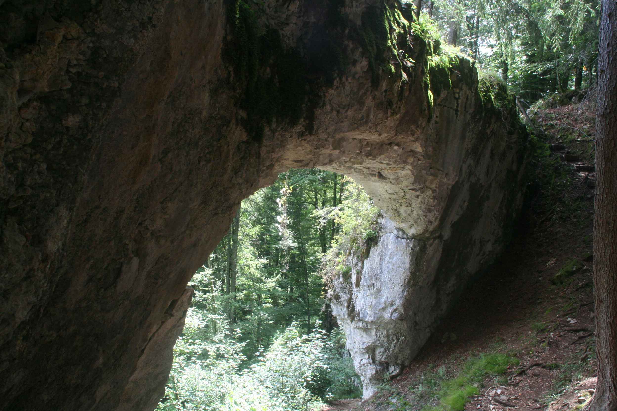 Die nicht mehr eingebundenen Gesteinstrümmer der Talseite fielen heraus und es entstand ein natürliches Felstor, da oben ein Felsbalken erhalten blieb. Langsam rutschte auch das hinter der Öffnung liegende Gestein nach, wodurch sich