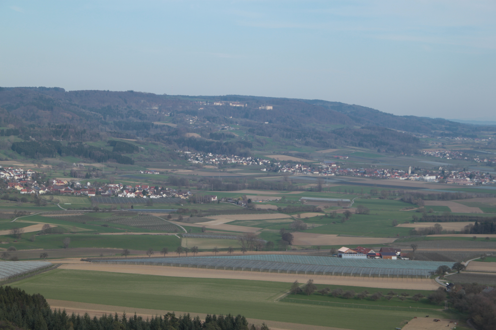 das Schloss Heiligenberg zu sehen, wie es majaestätisch oben am Hang thront, auf der anderen Seite