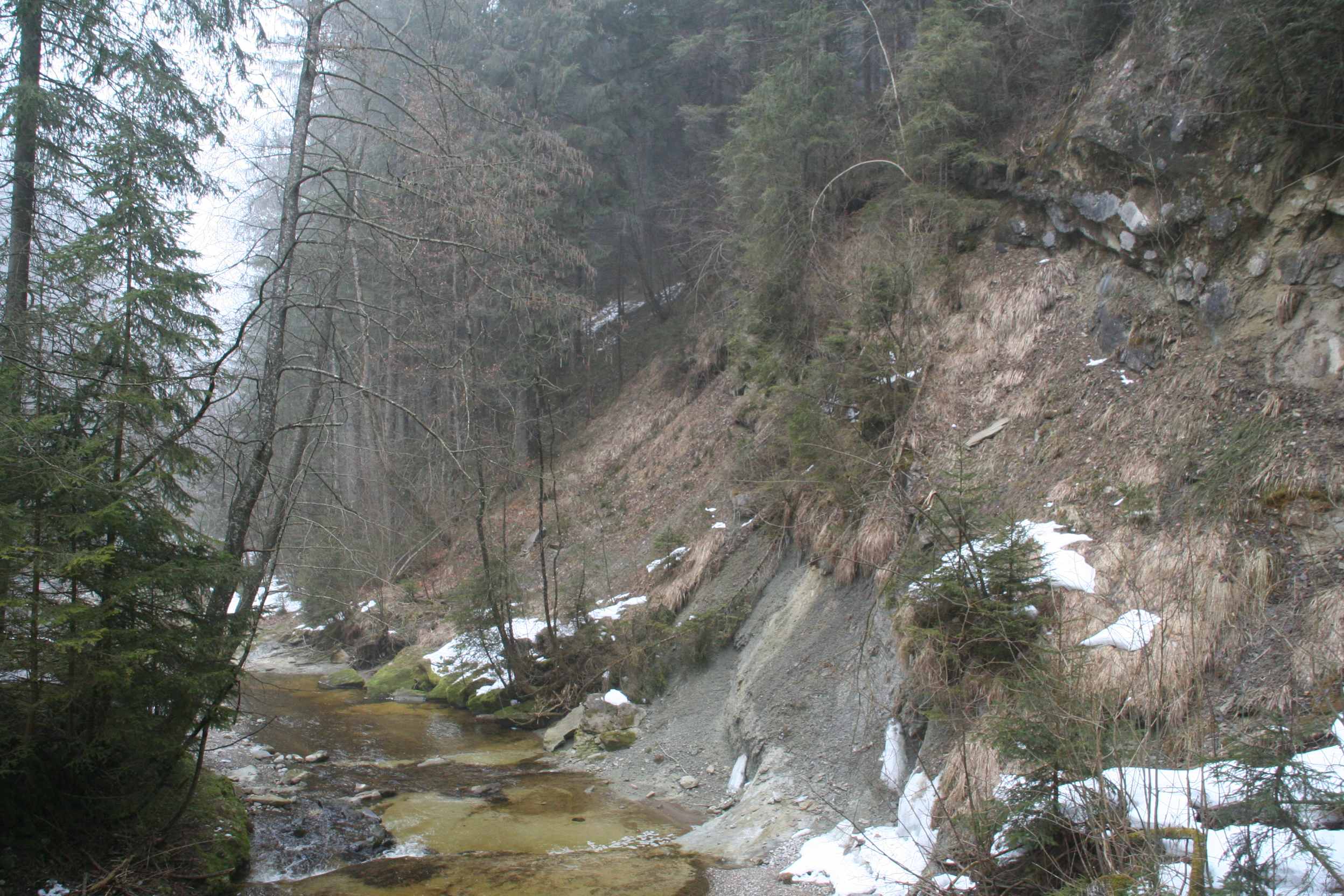 Hier hat das Tobel steile Wände sogar mit Felsen