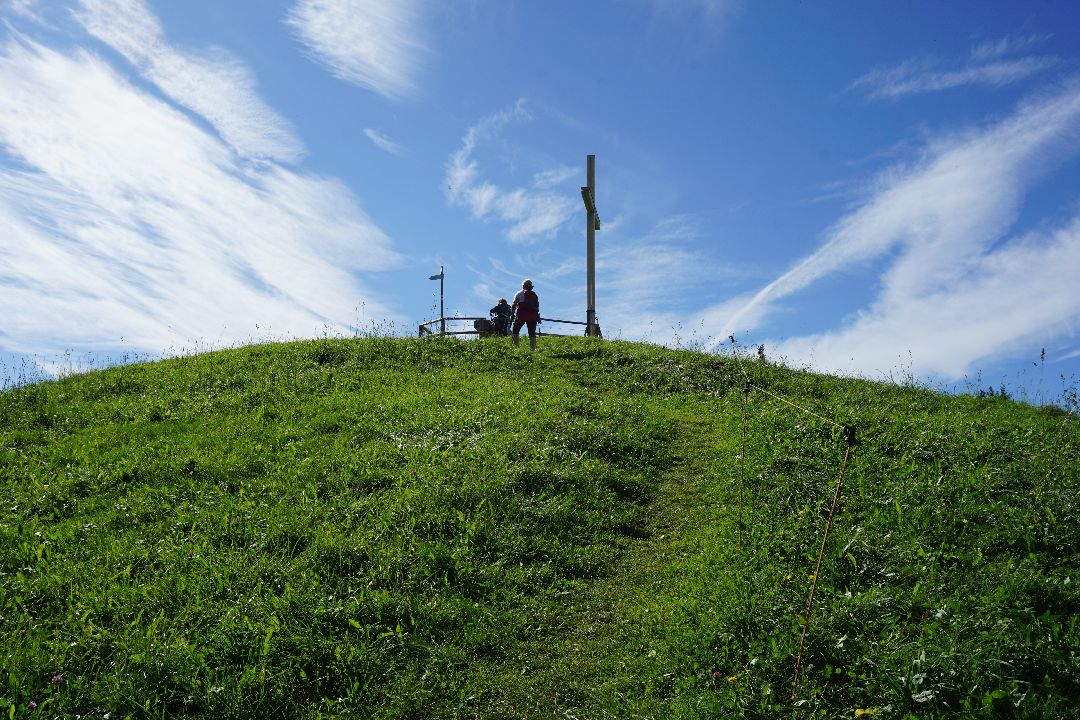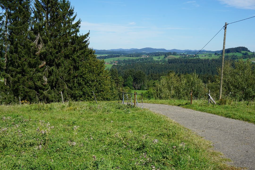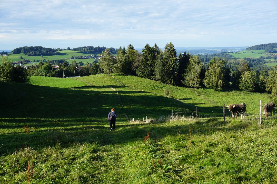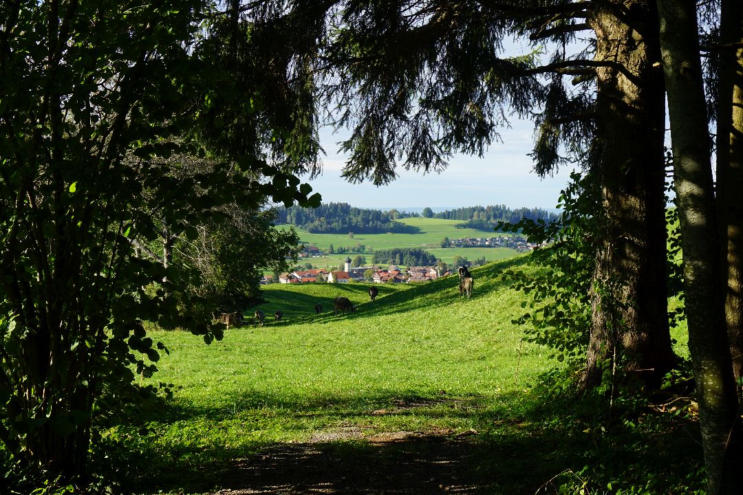 In sanften Wellen fällt die Höhe hinab nach Oberreute