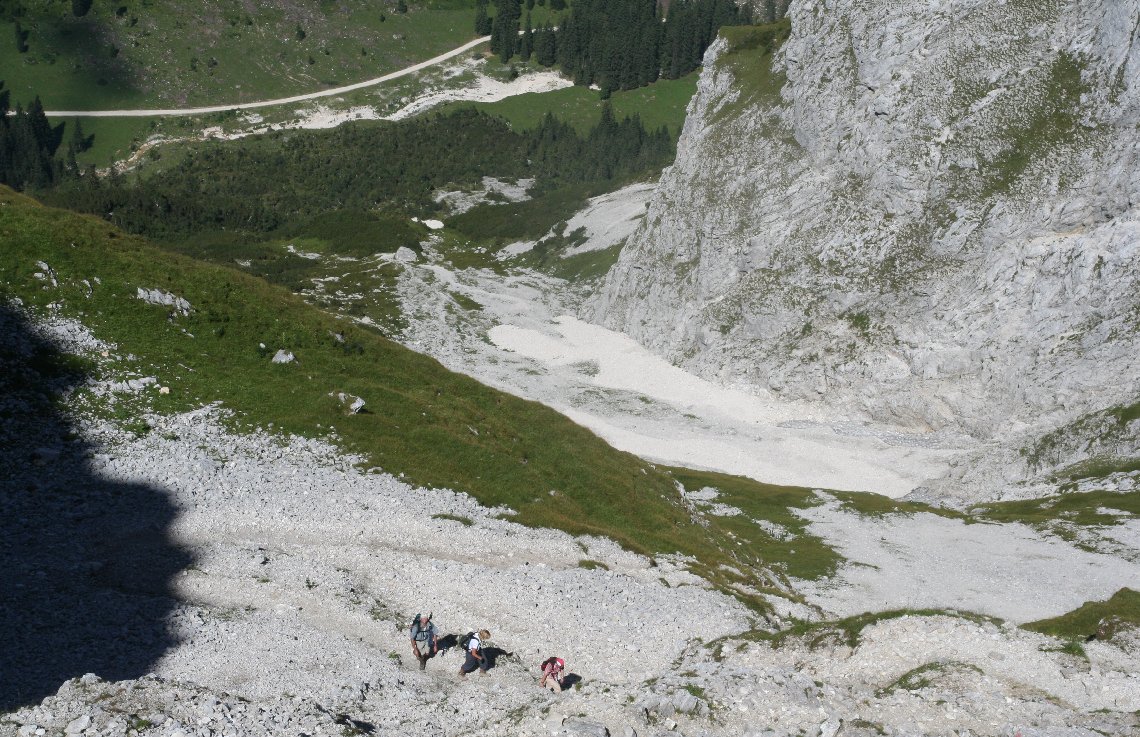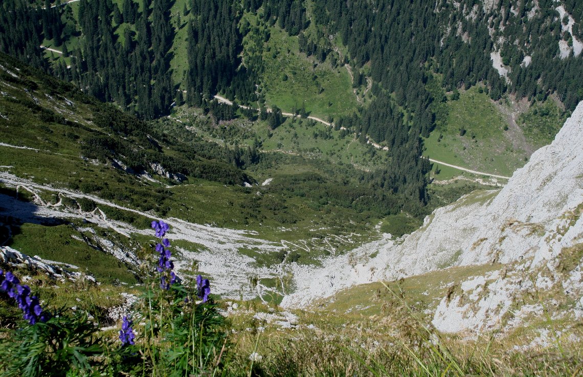 Blick von der Scharte ins Tal, wo mein Fahrrad steht