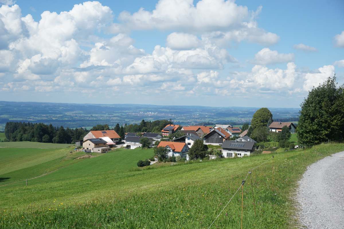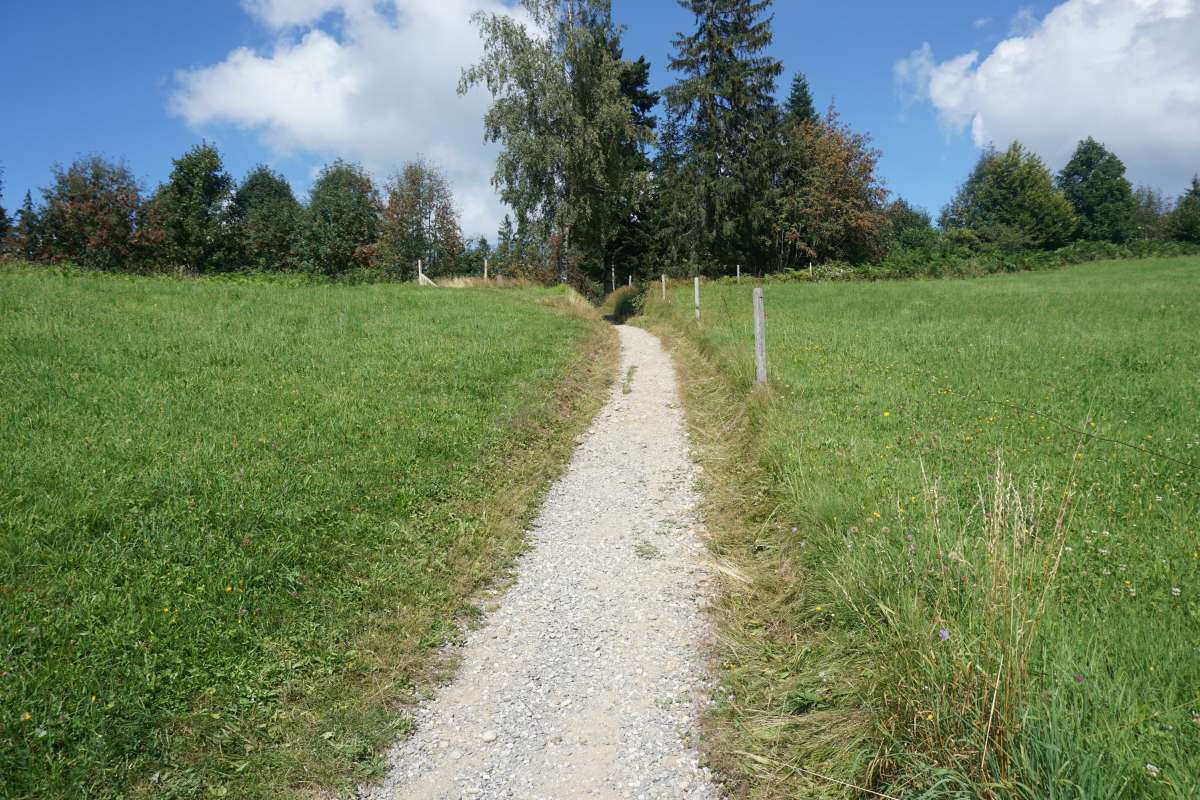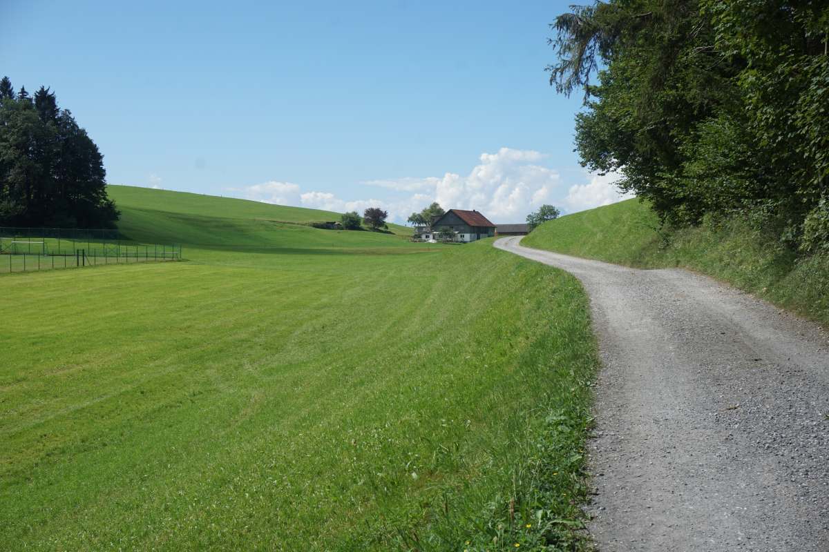 daneben führt ein Radweg aus Lindenberg hinaus, hinter dem Liebherrwerk zum Weiler Haus.