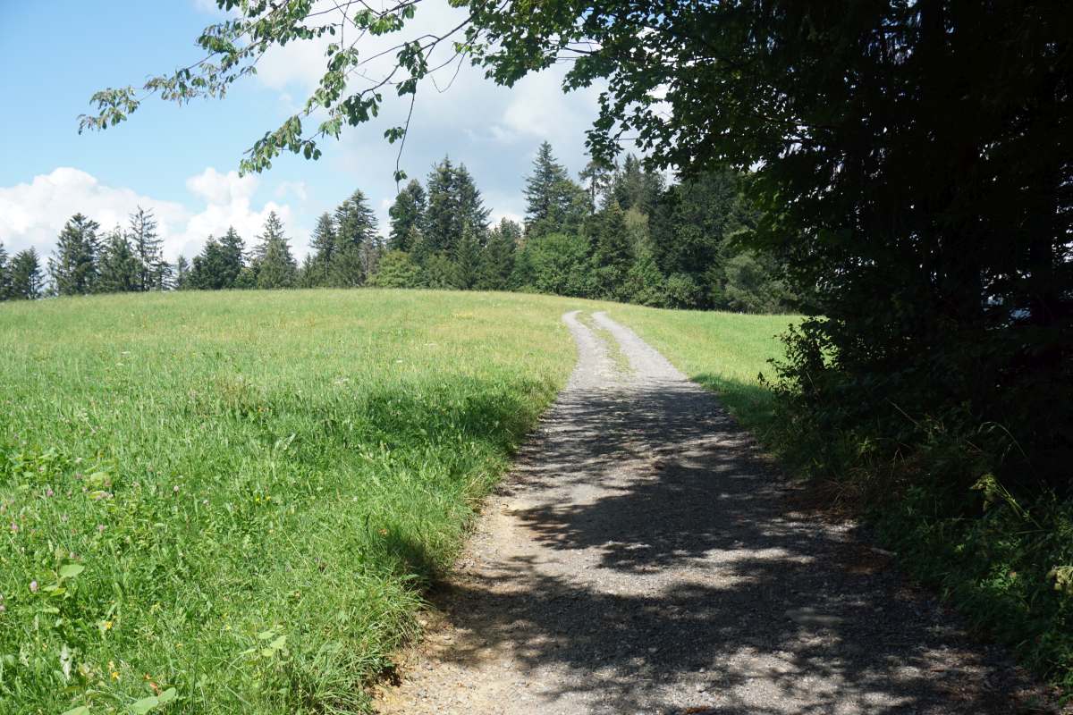 lassen ihn links liegen) auf Feldweg am Waldrand und im Wald (zwischen Hochberg und Trögerhöhe). Endlich