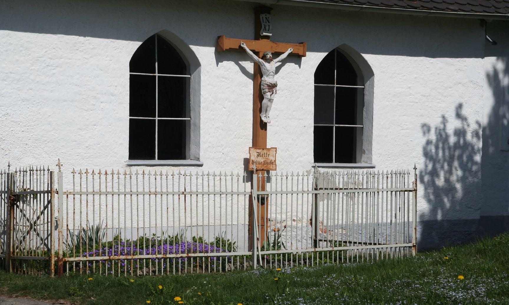 Die Kapelle von Günzegg. Wunderschön der alte Eisenzaun.