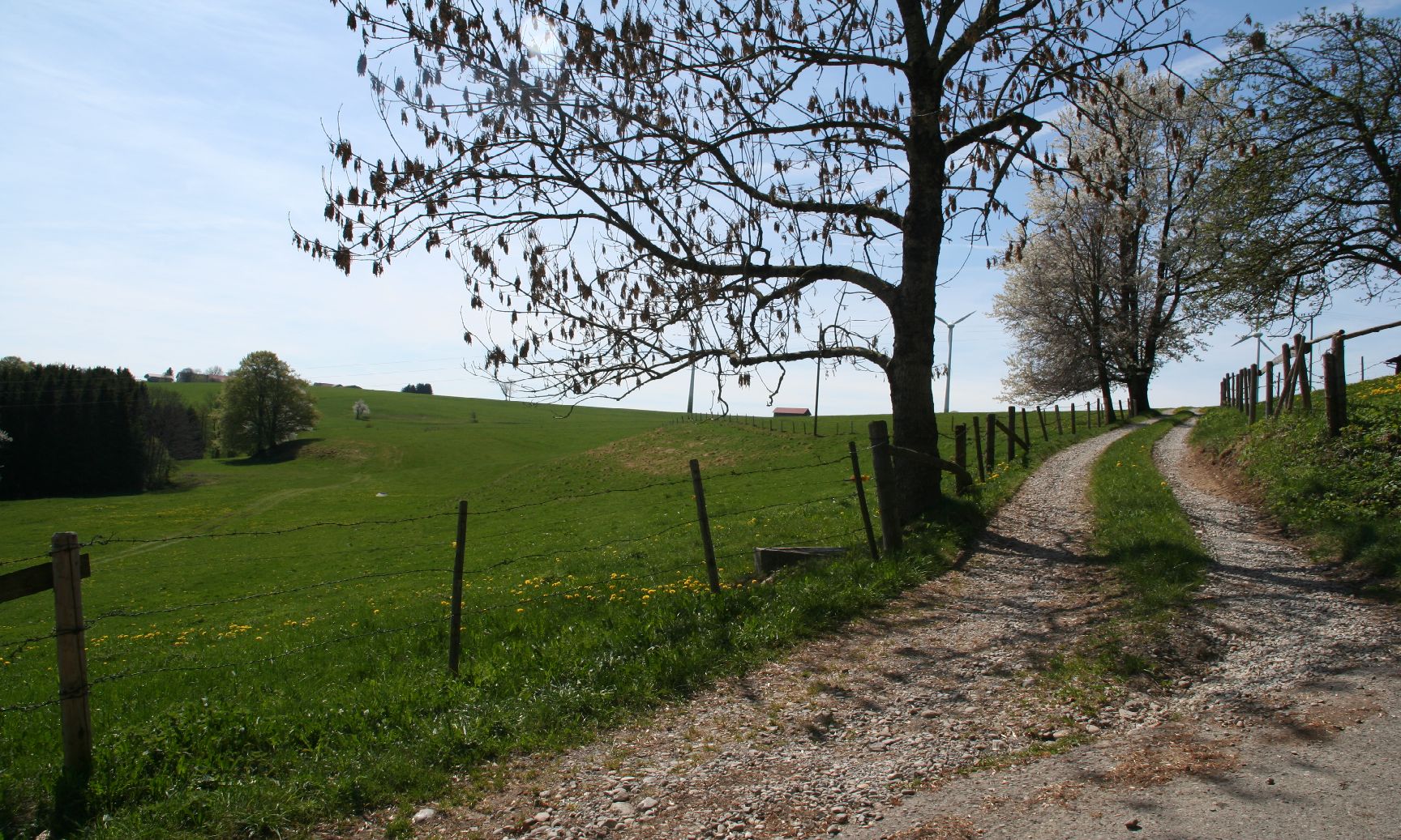 weiter nach Köngetried, einem hübschen Dorf oben am nächsten Hang. Durch den Ort, an der Kirche vorbei und dann links hinab nach Lichtenau. Die Straße