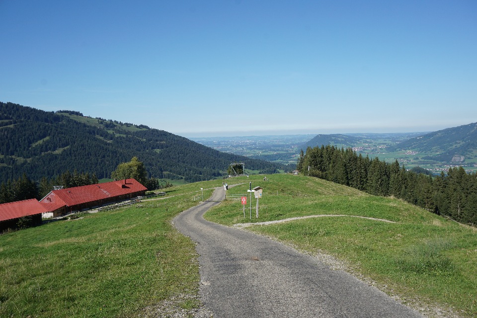 ins Illertal mit Grünten und Sonnenköpfen hinauf zum Rastplatz. Kurz danach dann links