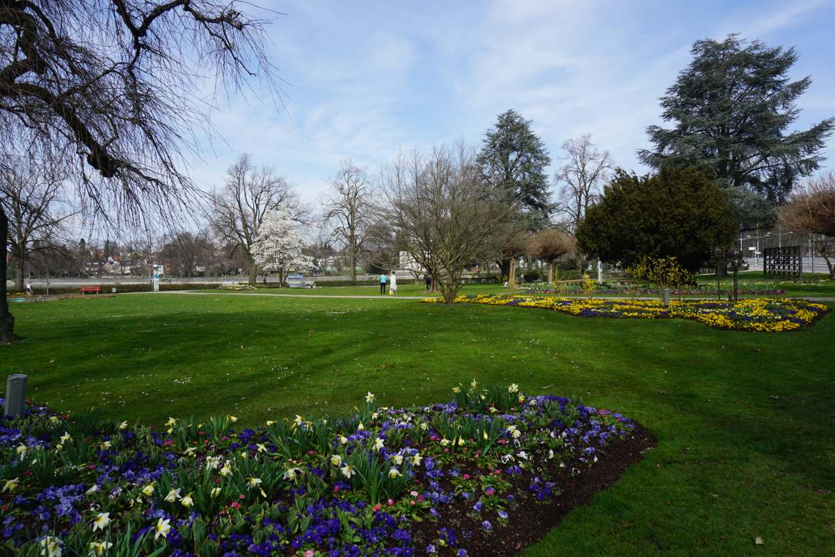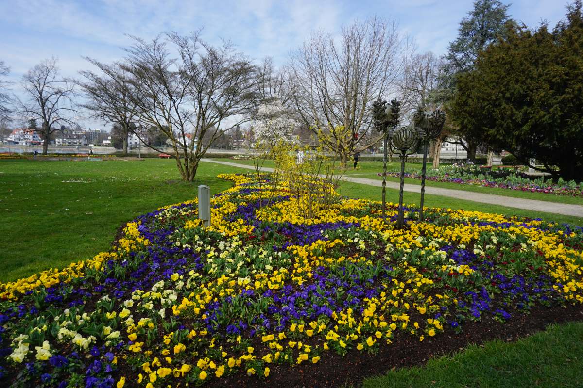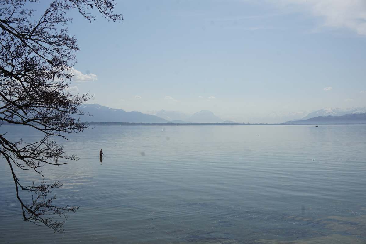 Das Ufer ist einfach wunderschön mit Blicken auf die Insel, auf den See, die Alpenkette, die Bucht